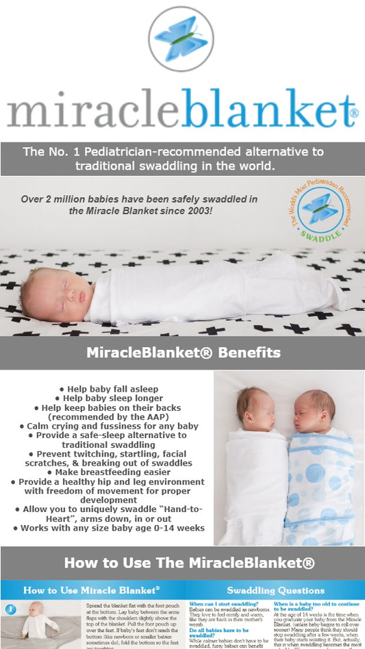 Miracle Blanket Baby Swaddle Wrap – No. 1 Pediatrician Recommended Swaddle Alternative! It reduces fussiness and helps baby sleep better.  Miracle Blanket Baby Swaddle Wrap is easy to wrap and more importantly, it STAYS PUT!